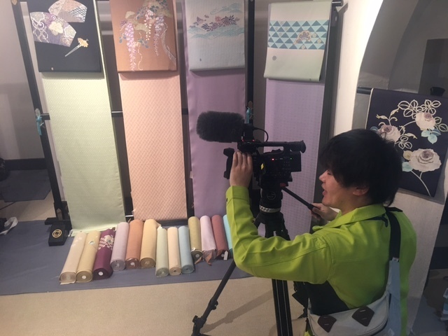 当店に来場中の、女流友禅作家・東矢千嘉子先生とお客様がインタビューを受けました。